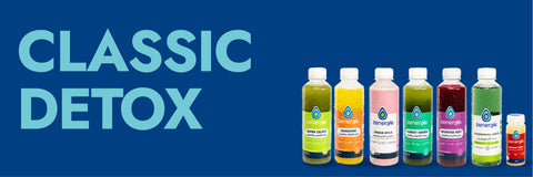 7 bouteilles au total Le détox classique propose un mélange équilibré de jus verts et de saison. Les jus verts sont généralement riches en vitamines, minéraux et antioxydants, tandis que les jus de saison fournissent des vitamines supplémentaires provenant des fruits de saison. Le lait de noix, qui est le n° 3, fournit une source de graisses et de protéines saines.De plus, le détox comprend un shot de gingembre qui facilite la digestion et renforce l'immunité. 500 calories par jour